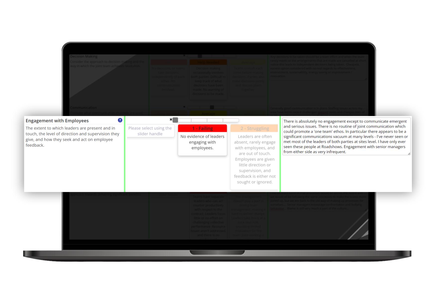 What began with a broad exploration of the situation now sees tight Value Code measures of the Things That Matter, demonstrating that the subjective has been made objective, and the abstract made specific, prompting even more focused comments to explain the evaluations made and what might need to happen: