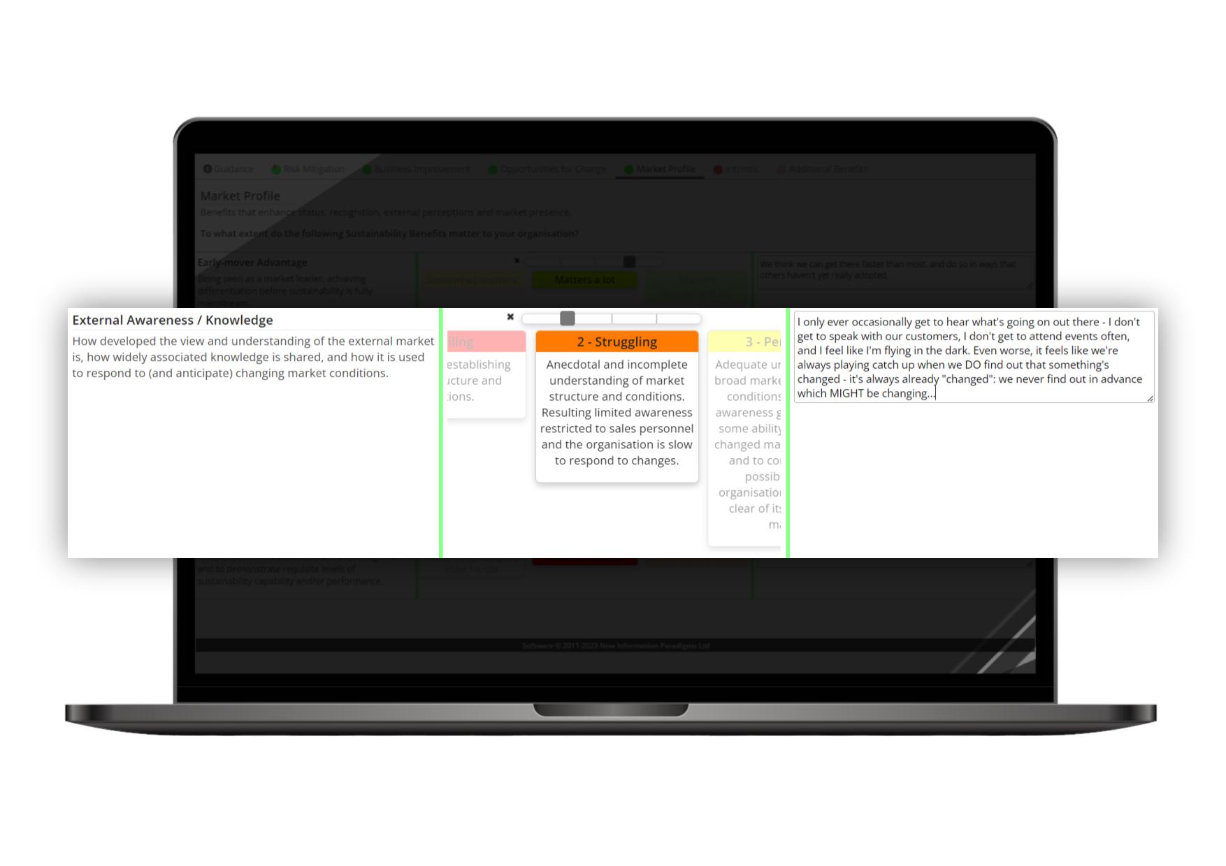 • NIP’s Sustainability Scoping Diagnostic is an example of a domain-specific diagnostic developed to help organisations understand in more depth why they might engage – or are engaging – with the sustainability/ESG agenda.