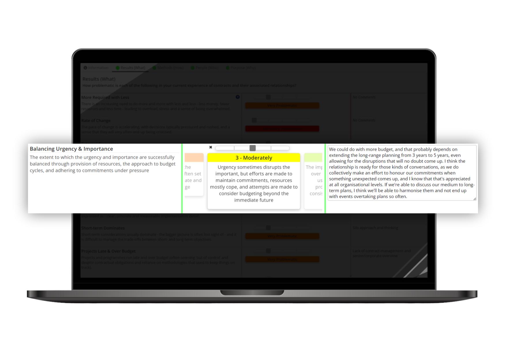 These diagnostics can also be customised or wholly new ones developed, specific to the situation, e.g. NIP developed a diagnostic with the relationship leads in a large outsourcing contract that was in trouble, helping them target areas of known problems.