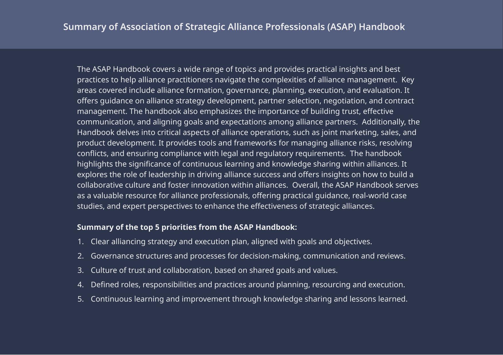 • Establishing the main capabilities an organisation needs to be able to implement the ASAP Handbook‘s alliancing methodology.