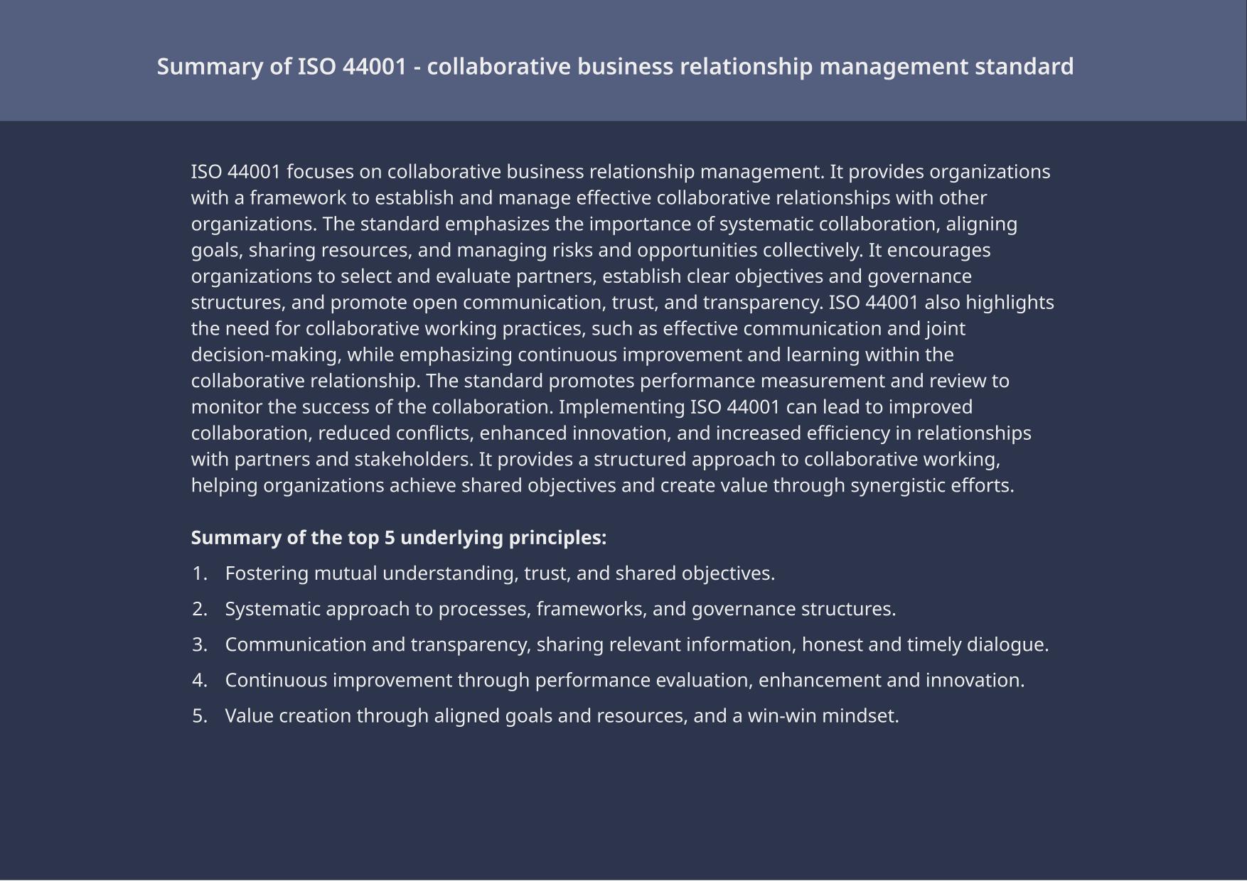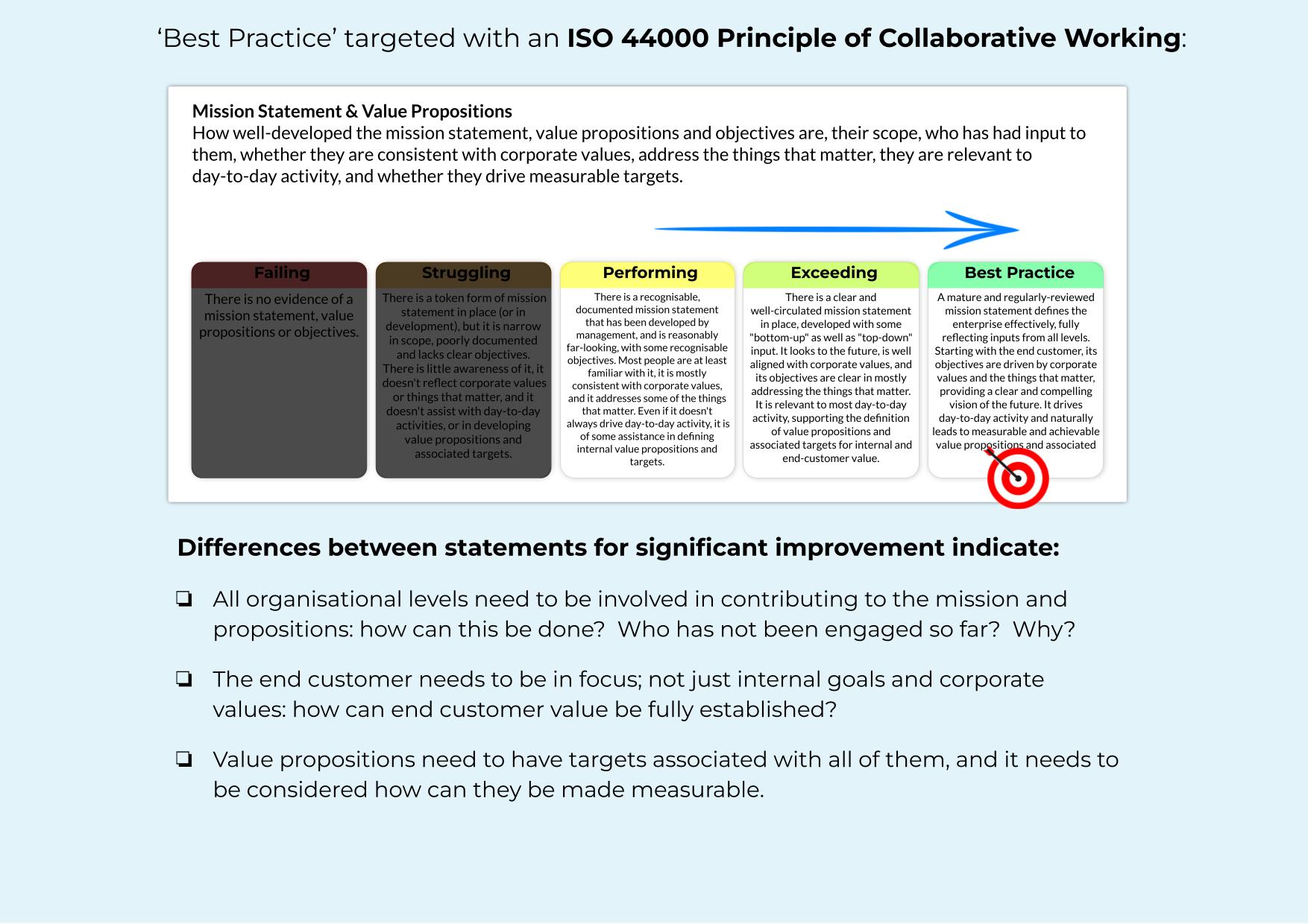• Distilling down the ISO 44001 collaborative working standard to its underlying principles to make it more “approachable”.