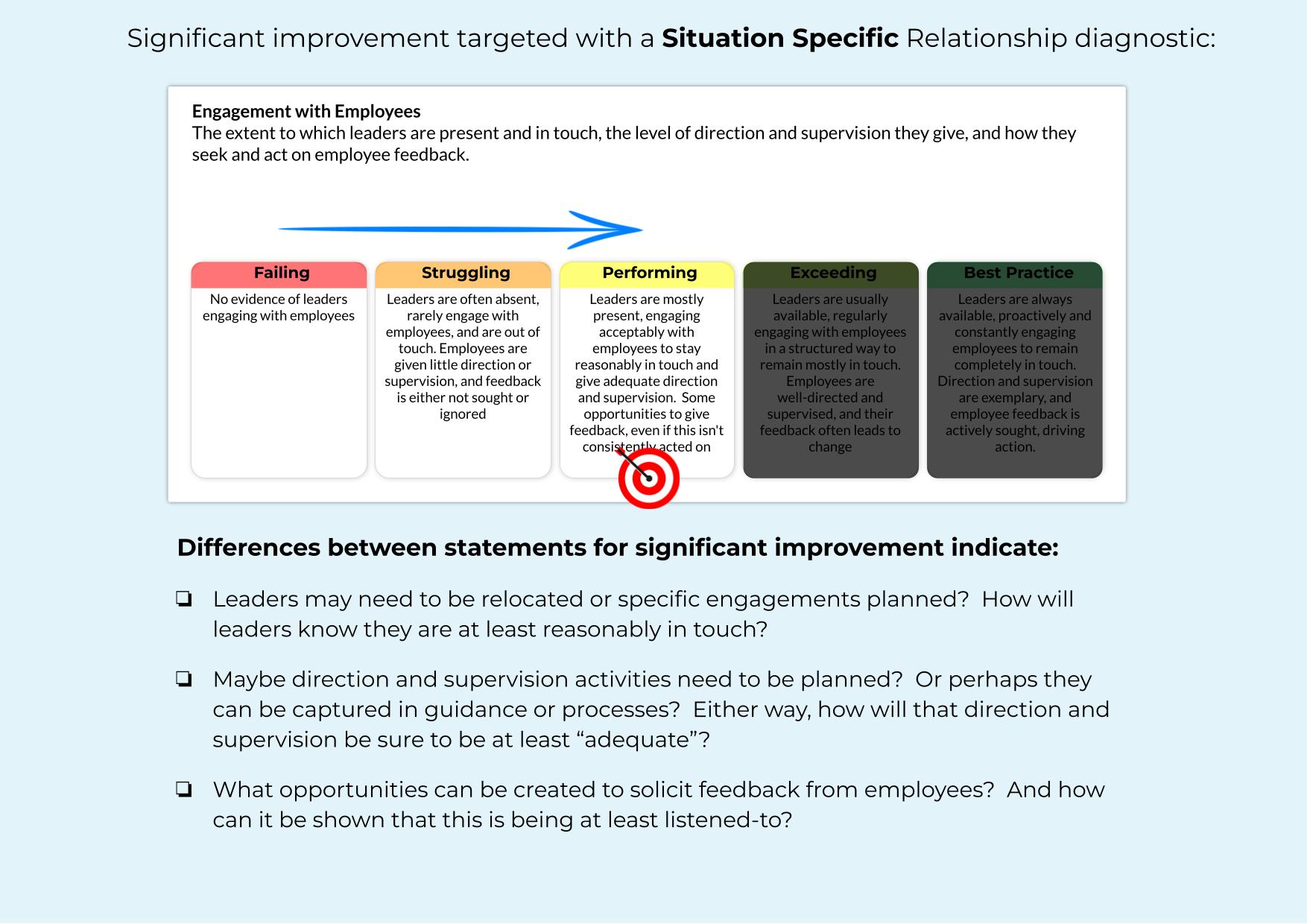 Most of all, complementing the options to ask for suggested actions, the differences between successive evaluation statements indicate what actions are needed – whether for incremental or dramatic improvement: